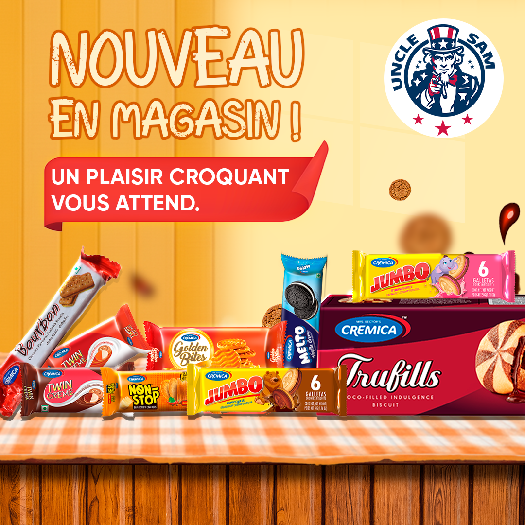 Visuel publicitaire mettant en avant le nouveau packaging et les saveurs gourmandes de Cremica, avec un design chaleureux et attractif.
