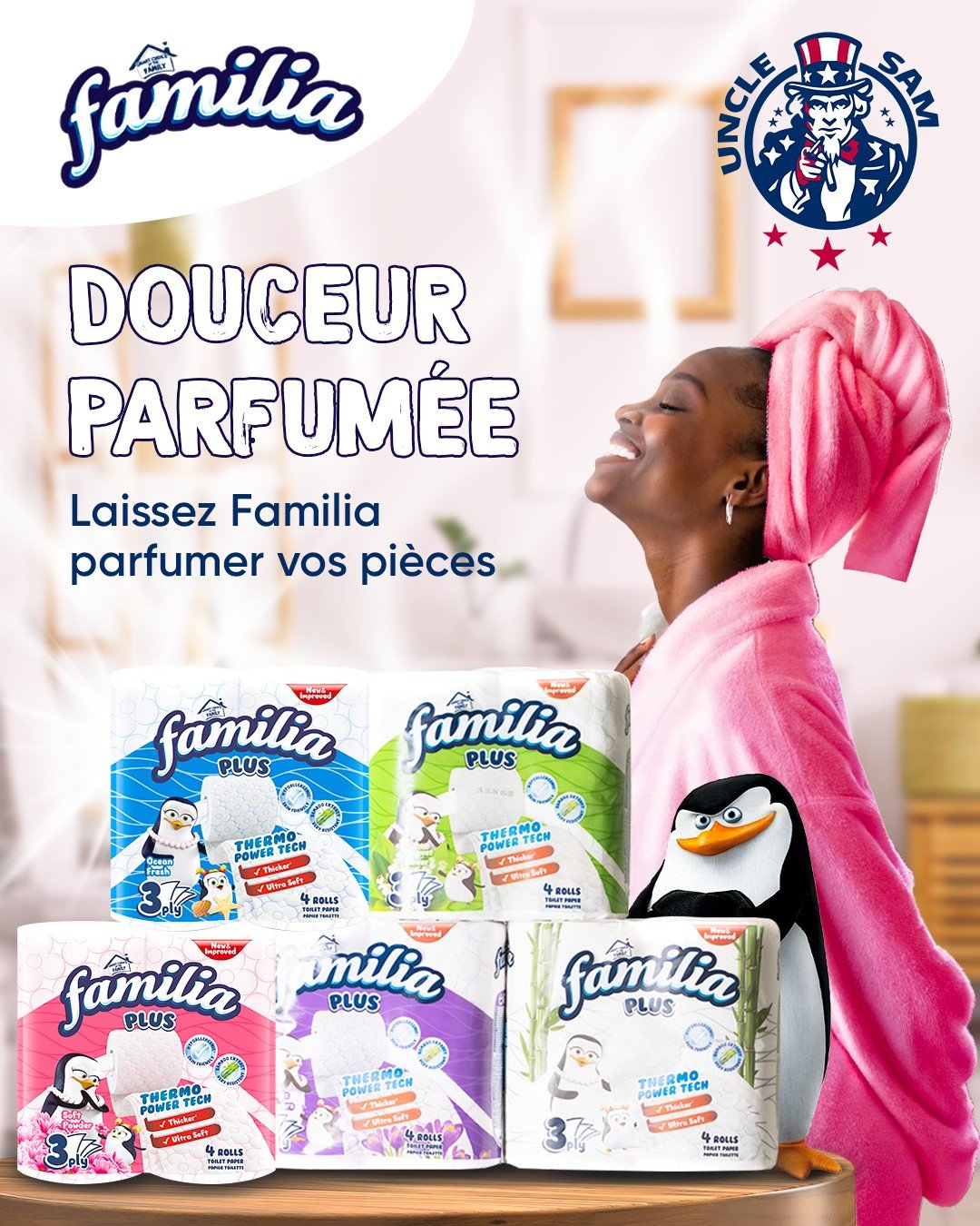 Packaging et visuel commercial valorisant la qualité produit avec un design clair et moderne.