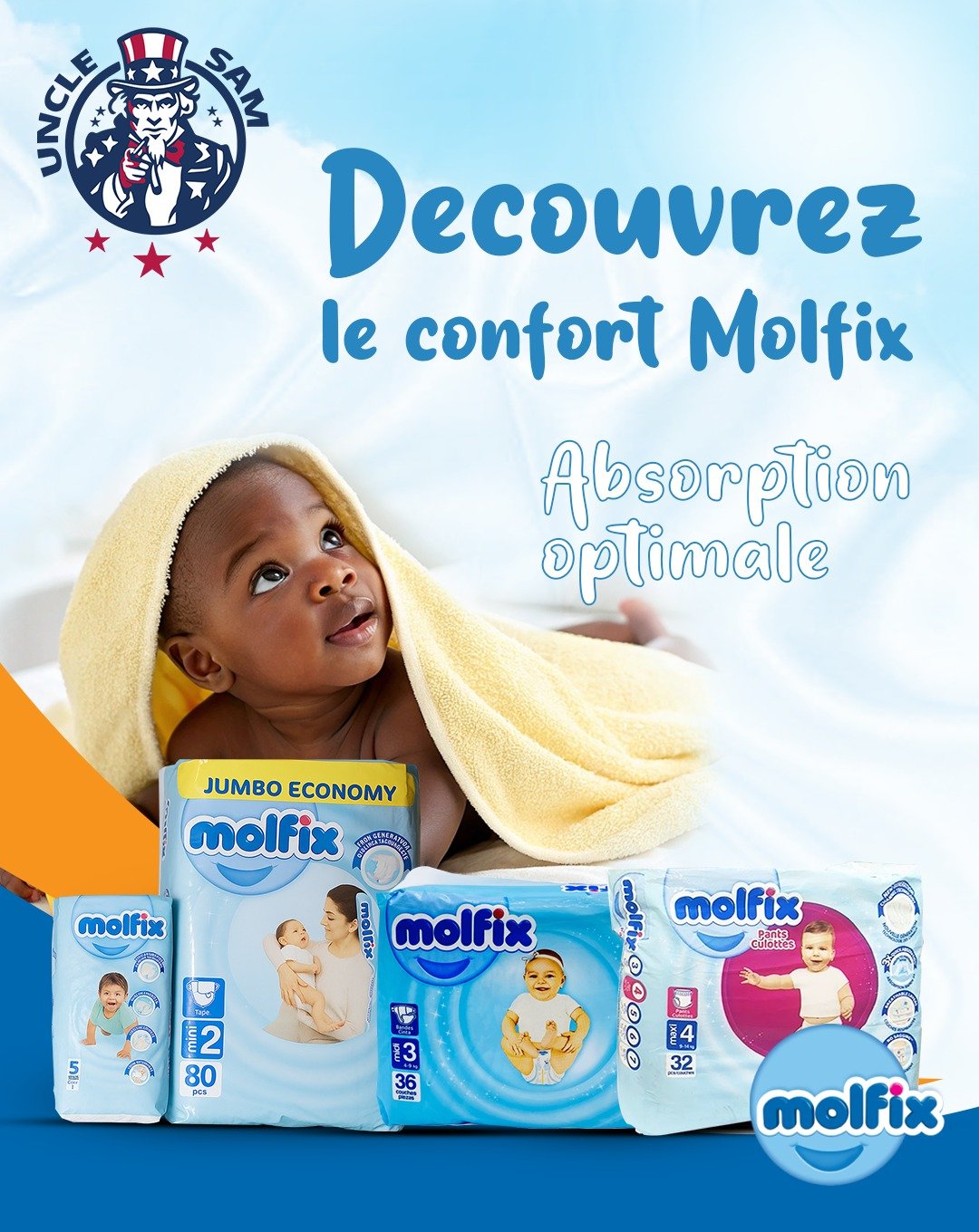 Campagne visuelle centrée sur le confort et le bien-être des bébés, avec des couleurs douces et rassurantes.