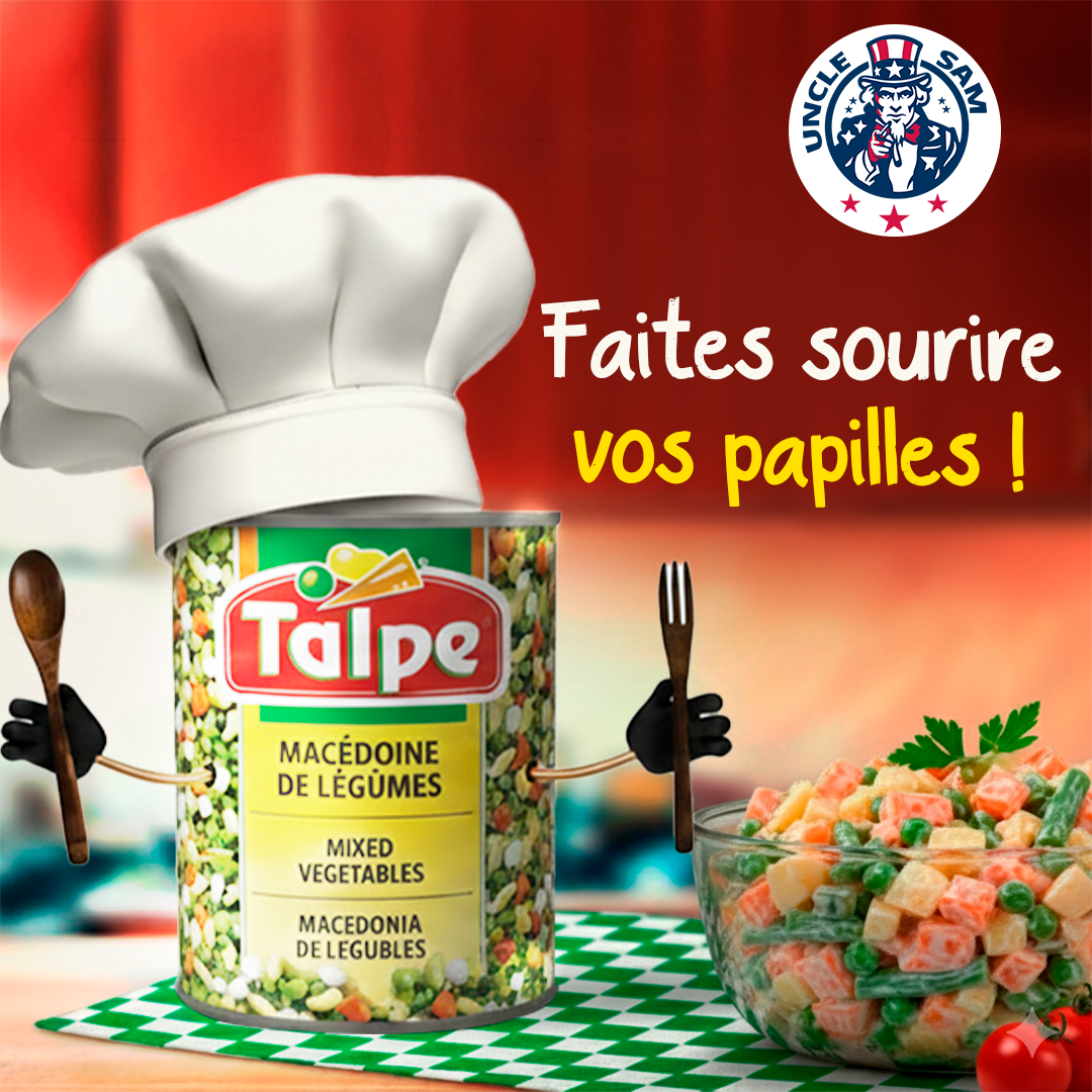 Affiche culinaire pour la marque Talpe, mettant en avant la fraîcheur et la gourmandise de ses produits, avec une mise en scène conviviale et appétissante.